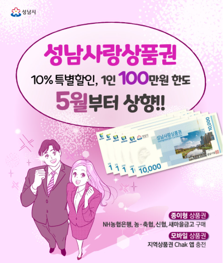이번에 성남시에서 제공하는 ‘성남사랑상품권’이 10% 할인 혜택을 6월까지 연장한다고 합니다!